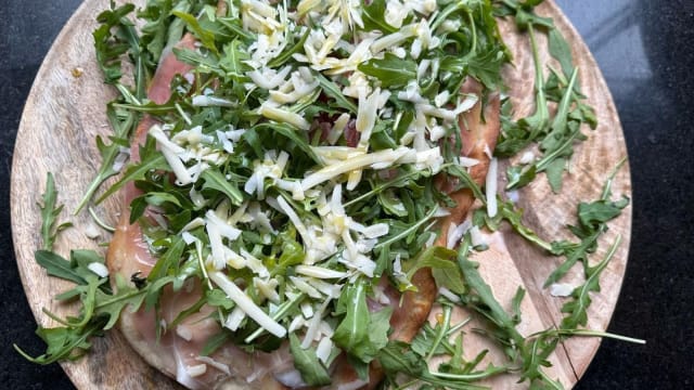 Mozzarella, rucola, prosciutto crudo e scaglie