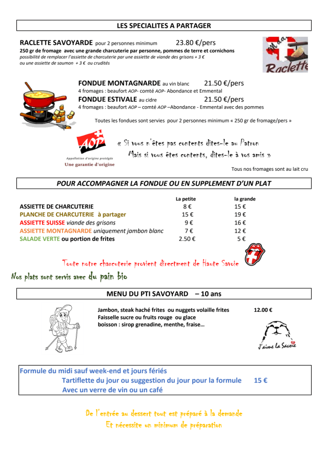cuisine traditionnelle et spécialités savoyardes, situé en bordure de l'Oise avec une belle terrasse fleurie. L'hiver atmosphère savoyarde : raclette, fondue, tartiflette, aux beaux jours ambiance estivale : salades, fritures de poisson, pluma ibérique ....