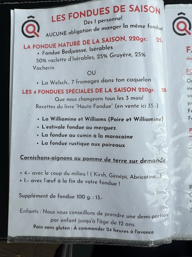 9.5/10Nice fondue, well served and tasty. I recommend it if you're in the region. The staff was very friendly.