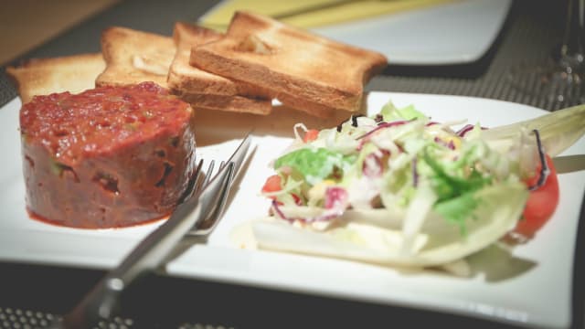 - Frites, salade et sauce tartare ( à choix 150g ou 200g)