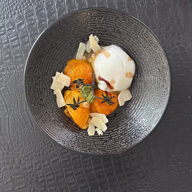- Carpaccio de melon, burrata truffée et jambon affiné