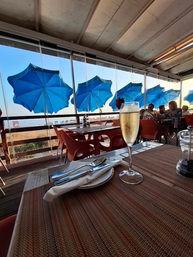 10/10Location! On the beach. A quintessential beach side restaurant with a great view of the sea and the sunset. The food was good and the service, excellent. Typically Portuguese.