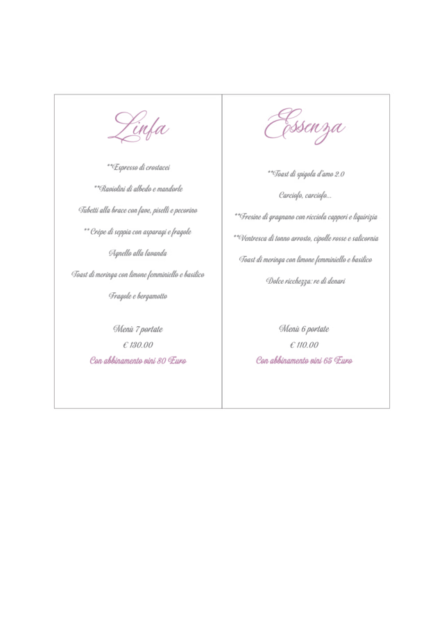 Menù 9 portate Un menù pensato solo per te, lo chef Tramontano ti proporrà piatti invitanti ed attraenti, deliziosi e soddisfacenti dove la tecnica si fonde con il gusto, a favore di un grande equilibrio.