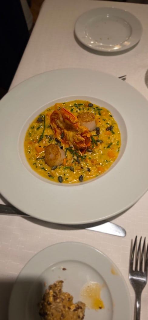 8.5/10The food was very good. Our party enjoyed pumpkin risotto, leg of lamb, sea bass, lobster pie, ….. Our waiter was a little sarcastic for our taste. But the evening was wonderful.