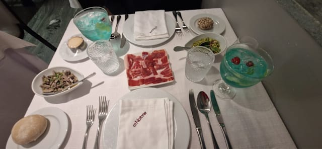 6/10We entered, the staff looked a little baffled, almost unfriendly. Throughout the evening their demeanour remained the same - almost slightly fearful - is it that type of establishment? It did feel a little Paris in the 80s - efficient hierarchical service but no meaningful contact apart from one waiter (not the senior waiter). We were led to a table where there were already a selection of items on the table - none of which we had asked for but all of which we were charged for later - very strange practice. We had assumed it was welcome gesture. It did feel a bit like give with one hand (discount) and take back with other. The food (overall) was good though we had had better versions of some items at lunch for half the price (after discount). The interiors need a revamp - the design is not cohesive at all and feels more like a set. Disappointing after all the reviews on here.