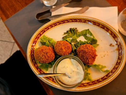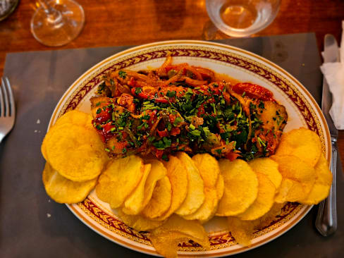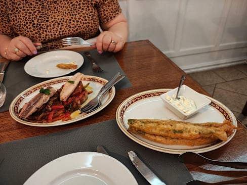 10/10Wonderful meal, served by Adrianna, who was so attentive and passionate about the food we thought she was an owner. Their specialty is fish, so we ordered Golden Bream & Sea Bass. They grilled them whole, and Adrianna fileted each of them at our table. There was also a beautiful plate of mixed vegetables: zucchini, broccoli, green beans, turnips, and carrots, plus an entire plate of delicious potatoes with caramelized onions. A wonderful meal. Add a bottle of house wine, bread/olives/tuna salad on the table, and the total cost for 2 of us would have been 80 euros but The Fork had a 30% discount so it was 55 euros plus 10 for the delightful Adrianna. Definitely recommend.