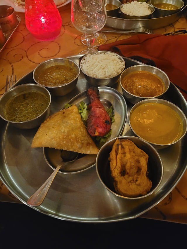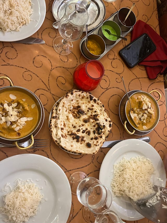 9/10Real butter chicken, great naan, good customer service, friendly service, good atmosphere, welcoming people. Great Chai and Rose Lassi too.