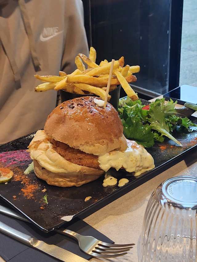 - Artisan Burger Bun, 150g Charolais Beef Patty, Brie de Meaux Cream, Grilled Bacon, Gherkin, Caramelized Onions, Tomato Slice, Burger Sauce - (Served with Homemade Fries and Mesclun Salad)