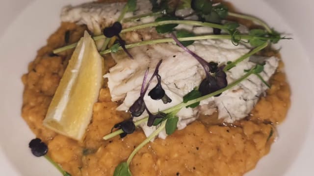 Risotto crémeux, filets de rougets, sauce au chorizo