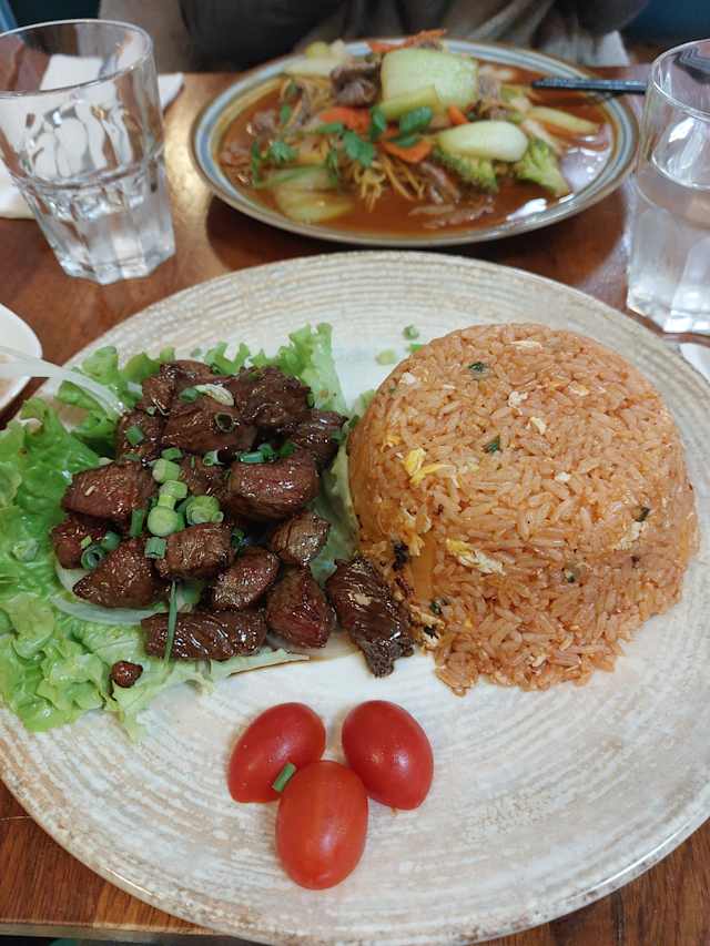 - Pâtes de riz rond sautées au boeuf et aux crevettes