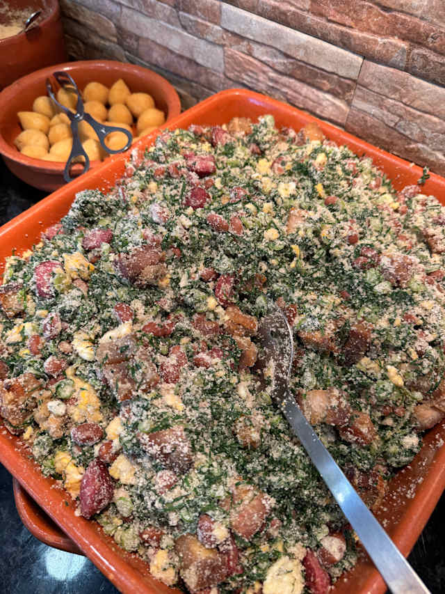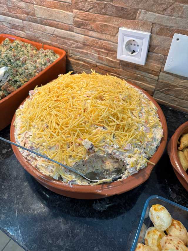 - Composto por pratos quentes, saladas variadas, queijos, enchidos, salgados e doces.