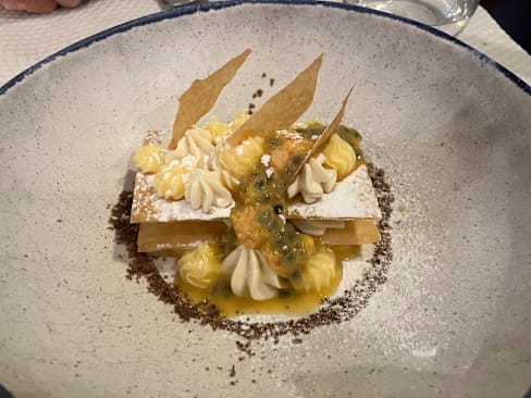 9.5/10Our dining experience was excellent from the starter to the dessert. The fish was of outstanding quality and prepared in beautifully crafted dishes. It is definitely worth the drive to visit this restaurant. The dessert, a filo pastry with passionfruit and coconut cream, was a delicious finale. The wines are also very good. A small tip: be sure to reserve in advance to enjoy the full experience, as the restaurant closes early.