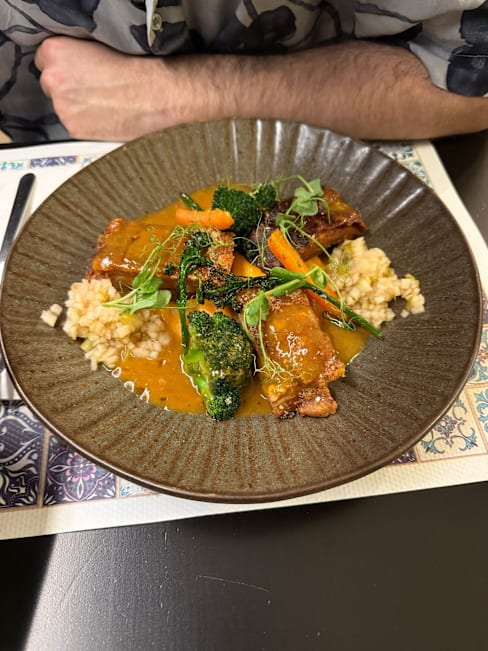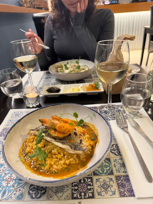 10/10This was possibly the best meal I have had in years….and I eat out frequently! The prawn starter inspired joy, sadness and anxiety: joy in the eating, sadness when it was finished and anxiety that the main would somehow be less than magnificent. My anxiety was all for nought; the fish risotto made me stop, savour and dive in with the gusto of a famished man. My senses could hardly believe the depth of flavour, the freshness of the fish and how well it was all balanced! Sublime. Again, anxiety crept in: surely a savoury meal of this quality would leave the chef exhausted, as empty as my plate was? But no, like the marathon runner with one last spurt of energy…the dessert was that last essential thrust! A divine celebration of passion fruit atop a delicate layer of philo. A masterclass in a meal that left me satiated and blissful yet wanting to do it all over again.