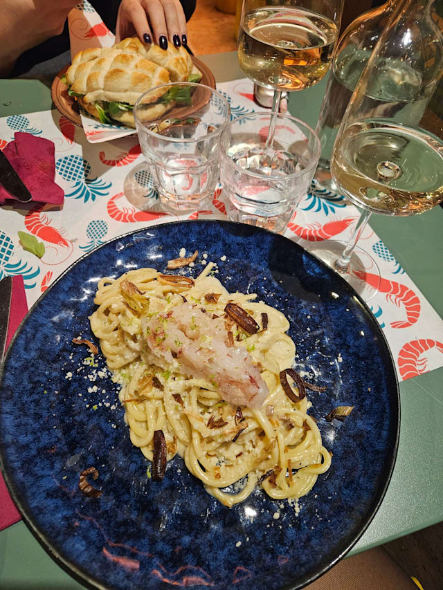 Il locale ha una cucina che propone accostamenti di pesce dal sapore tropicale.