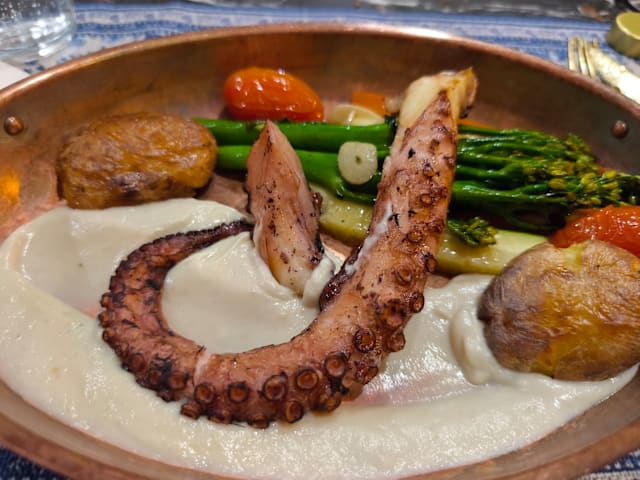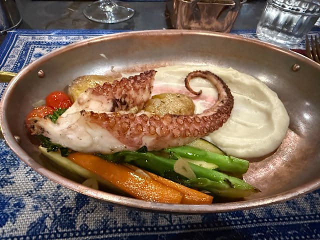 9/10This was our first visit. Visually, it’s the type of place that I’d probably just walk by: small, lack of charm, not many diners (at the time we went). We found a deal through The Fork and decided to take a gamble. What a pleasant surprise! We had the couvert of olives, warm bread, olive oil and cream cheese which was nice to nibble on while we waited for our food. Our main dishes took a little while to prepare, but that’s because everything was made fresh! The pork cheeks and the octopus were both expertly prepared and so delicious. Service was friendly and our server spoke English which was a plus. We both agreed that with the promotional discount, this meal was a terrific value. We have found a hidden gem and look forward to the next visit!