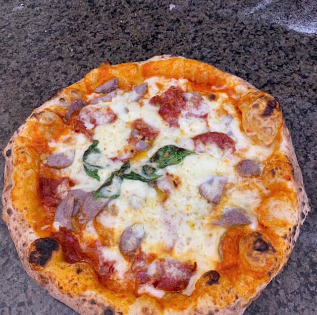 - Pomodora, mazzarella, ricotta fresco, salame dolce, pepe