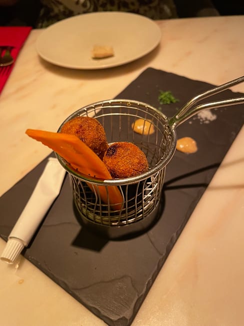 6.5/10Meat was great, but. There is a big problem with a service, woman at the entrance shamed us about changing our reservation last minute through Fork and we should’ve called them. Why it’s our problem that fork is not notifying you of changed reservations? But that’s not the worst part. Worst part is that we had plastic in our side and we politely asked them to explain us what it is (we know it’s plastic), and there was nothing done after that, no food replacement, no discount, no free desert. They just came out with a plastic bag from which they serve mashed spinach. Seriously? “Michelin” restaurant serves pre-made food? Ok, we looked at the plastic bag, that’s it, end of the story. Enjoy plastic in your food, come again. And we will charge you for service. Great