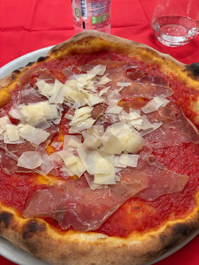 - San marzano, mozz. Fior di latte, gorgonzola, Rucola, crudo di parma dop