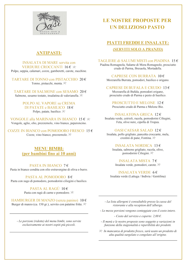 MediterraneanBurgerPiadinaSchnitzelOutdoor diningChildren's menuDinner showDog-FriendlyWheelchair AccessibleWifi