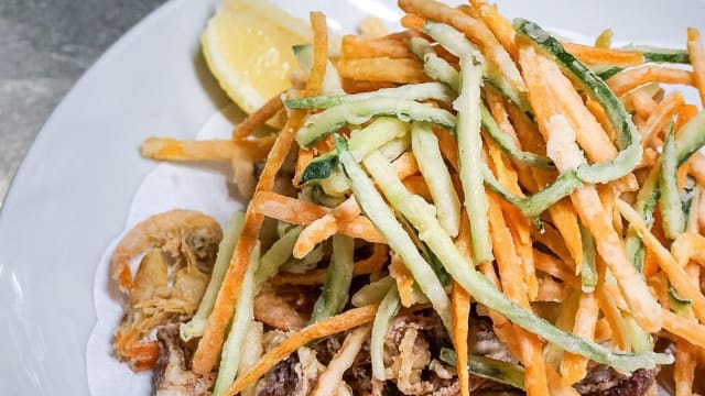 - Fritto di calamari e gamberi con verdure croccanti di stagione