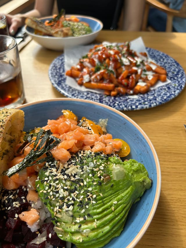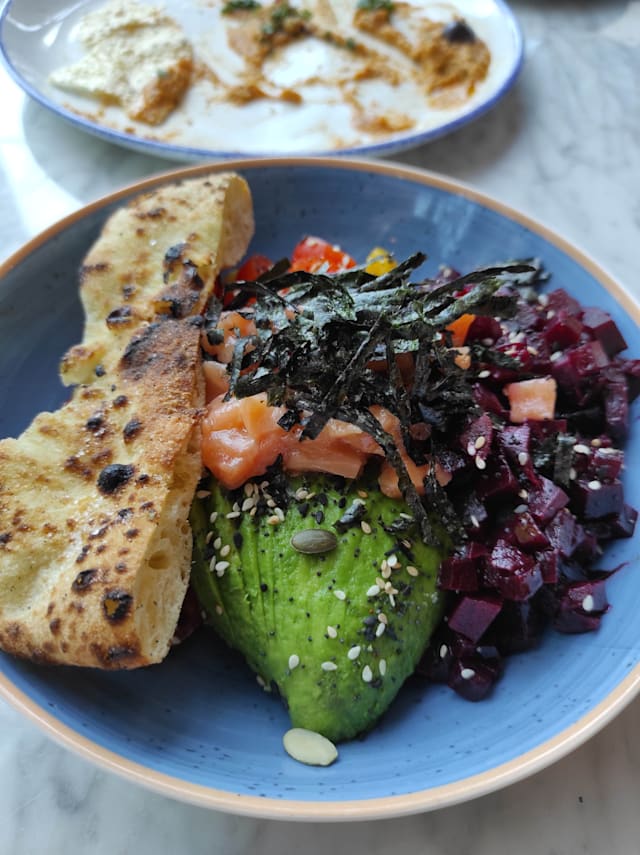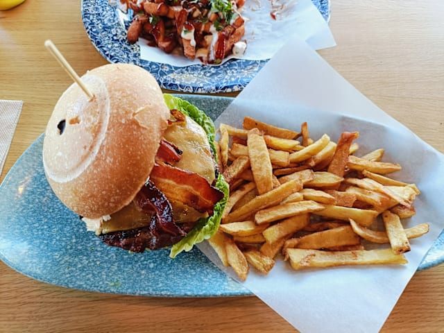 5.5/10There was no ambience - we were the only diners there. The was faint music playing but not loud enough to create some atmosphere. Despite there being no other customers, there was food on the floor under the first table we selected. The decor and furnishings were nice though and were there more customers the ambience may well have been better. The service was prompt but the welcome could have been warmer. No staff were visible when we left the restaurant. The food was presented well and tasted as expected.