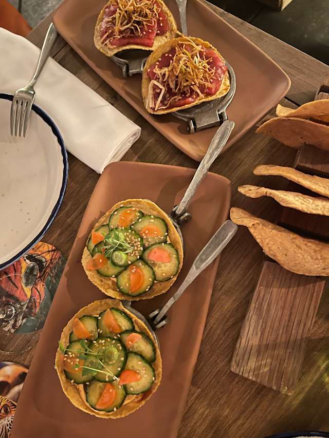 9.5/10We visited the restaurant for NYE offering a tasting menu and we were blown away by the flavors and creativity of the dishes. The staff was very friendly and attentive, we got a bag of festive supplies to properly celebrate the New Year, it was a really nice touch. The menu was really extensive and of a great value. The courses were a great combination of spicy and tangy, full of flavor. Overall, we had a very nice and festive experience and would recommend it to anyone looking for delicious and creative mexican cuisine.