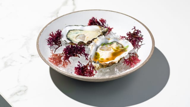Ostra marennes - oleron nº2, “panzanella” y albahaca