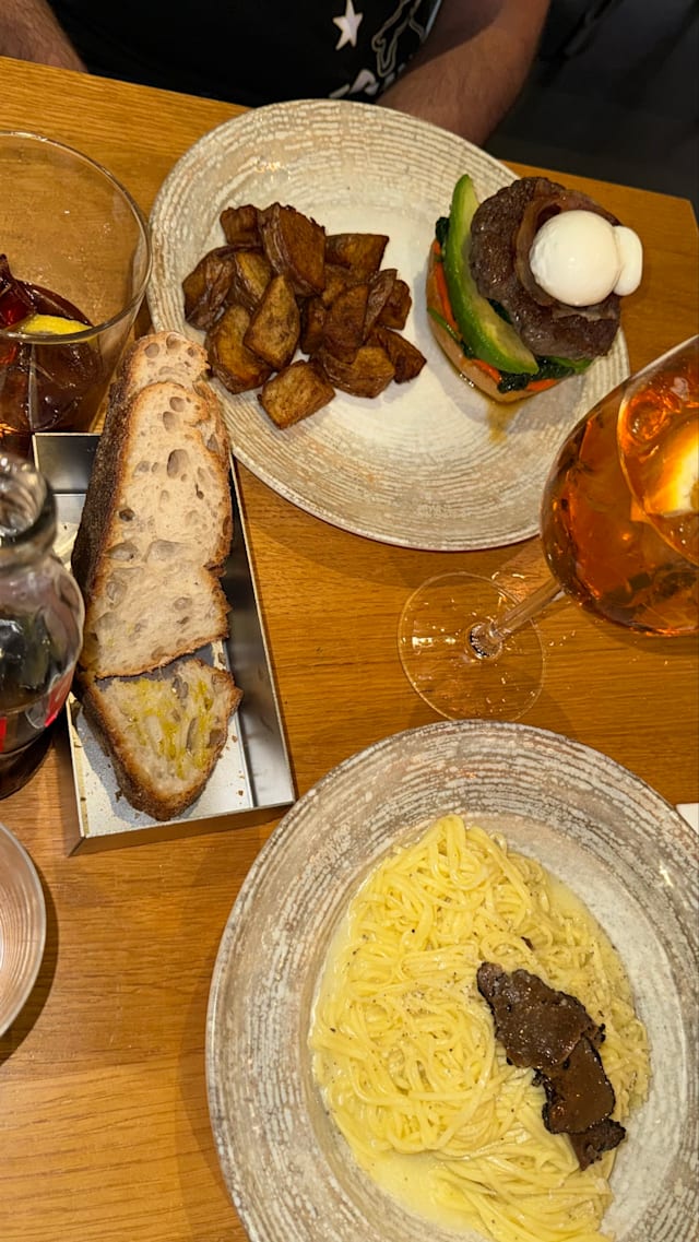 3.5/10The restaurant is nice and looks fancy but the food was not very good specially my truffle pasta was very mid and salty with very little truffle just a little on the top and the price was 19 euros. I also found a hair in my food, and it happens but the pasta wasn’t good either. Sorry but I wouldn’t recommend even if the servers were pretty nice.