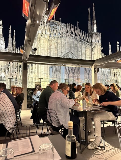 7.5/10The location was slightly challenging to find as it’s at the top floor of a seven story department store. Restaurant does overlook the side of the Duomo, however, was mostly covered in scaffolding. The restaurant was crowded and it was absolutely great that we had reservations. We had anticipated a menu option to sample the different mozzarella, but it was slightly different so take a closer look at menu in advance. Our waitress was phenomenal, despite how slammed she was. the drinks were overpriced and remember to account for the coperto. if you are taking the terrace tour of the Duomo, you can definitely skip this restaurant