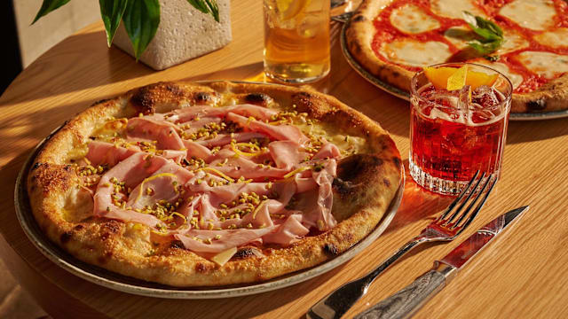 - Stracciatella, crevettes poêlées, artichauts frits, zeste de citron / camembert di bufala, courge, truffe noire à l'huile d'olive / pomodorini del piennolo del vesuvio dop et origan frais