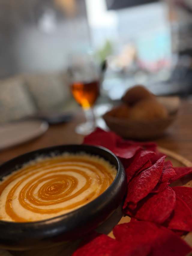 - Provolone fundido con mermelada de albaricoque y chipotle (ración)