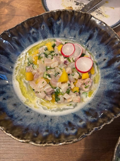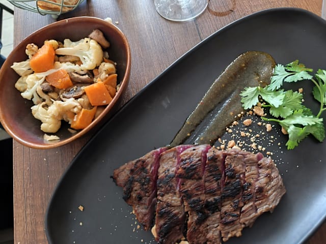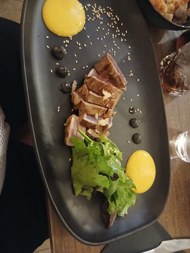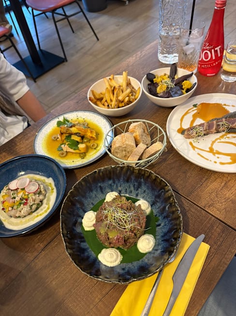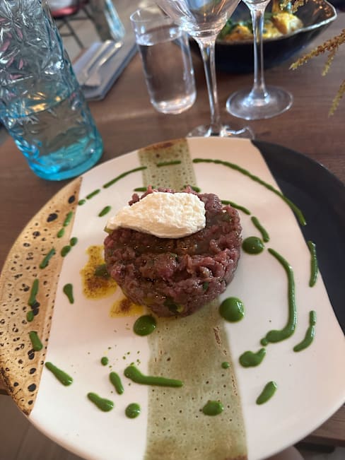 10/10Very good food beautifully presented. There was no female menu the day we came but that is fine as we ordered off the carte anyways. The restaurant filled up as we ordered. We had a choice of three fish dishes and three meat dishes. We had the three meats and two of the fish offered all were very beautiful presented and were fresh and tender. The beef tartare was the best beef tartare I have ever had. It was perfectly flavored and hand cut. The second beef dish was also tartare. It was slices of beef and also very nice. But I was a little surmised it was not cooked. The third was perfect pork chimichurri which was well cooked and very tender. The only request perhaps was a little more chimichurri sauce. The two fish entrees were nic. The salmon was japonais style - which we very mlld. The Madagascar shrimps were perfectly cooked and covered with spices and crispy. All in all a very pleasant meal. We came for lunch but the dinner prices are exactly the same.