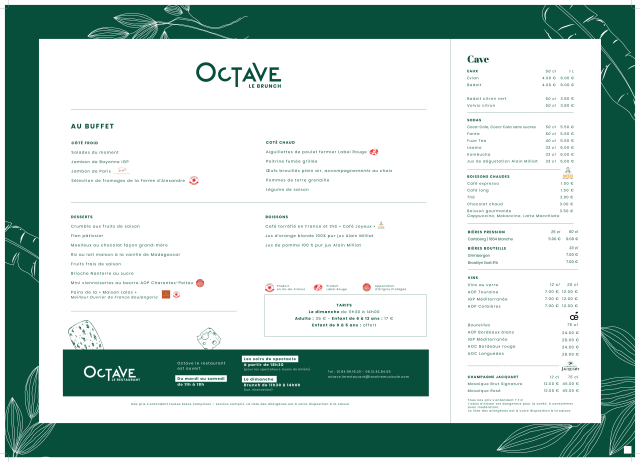 Le brunch d'octave (offert -5ans/ 17€-12ans) €35 per guest