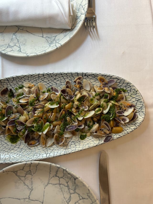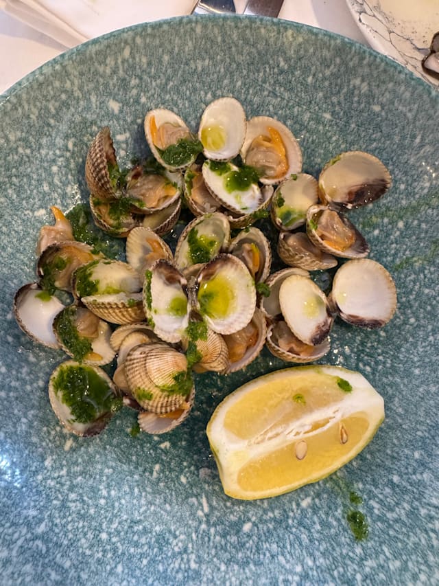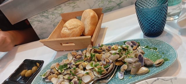 9.5/10Really fresh off the ice clams and scallops. Simple butter garlic and fresh parsley made for an excellent sauce. Great atmosphere and staff were friendly and could speak English no problem. Would recommend for sure.