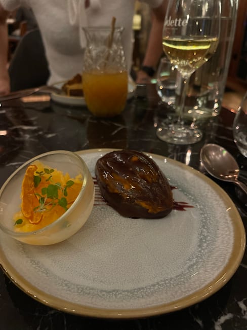 10/10Charming staff. Everything was delicious from the bread to the small first course. the delicious rouget, and the pot de creme au chocolat. the dessert in the lunch menu is small sized so you may want to pay a little more for a dessert from the a la carte menu - these are fabulous. I love the plush cream colored design, it’s a comfortable space to linger and you can actually hear the conversation. it’a great location.. l