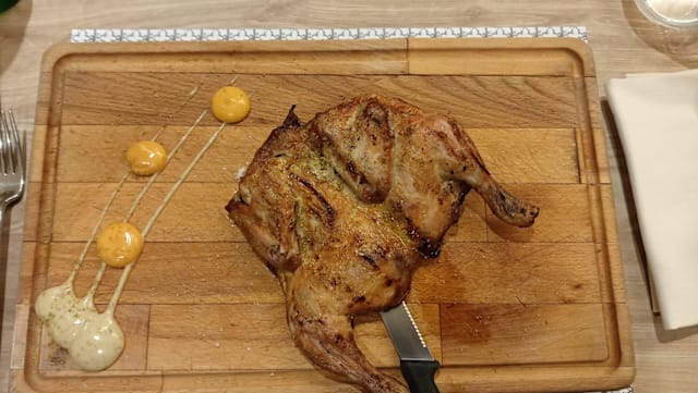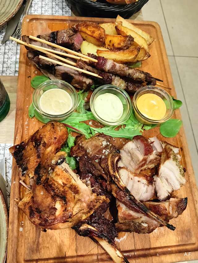 They had the best focaccia we've ever had. They serve it in a paper bag. You've got to try it. I ordered the slow-cooked pork shin (like an osso buco). It was delicious with crispy skin marinated in a honey and mustard sauce. My wife's grilled lamb skewers were a miss for her. She felt they lacked seasoning. On the other hand, she liked the side of baked potatoes, while I thought they were overcooked. In other words, you've got to find what you like.
