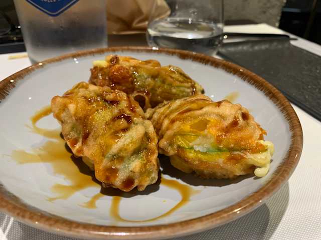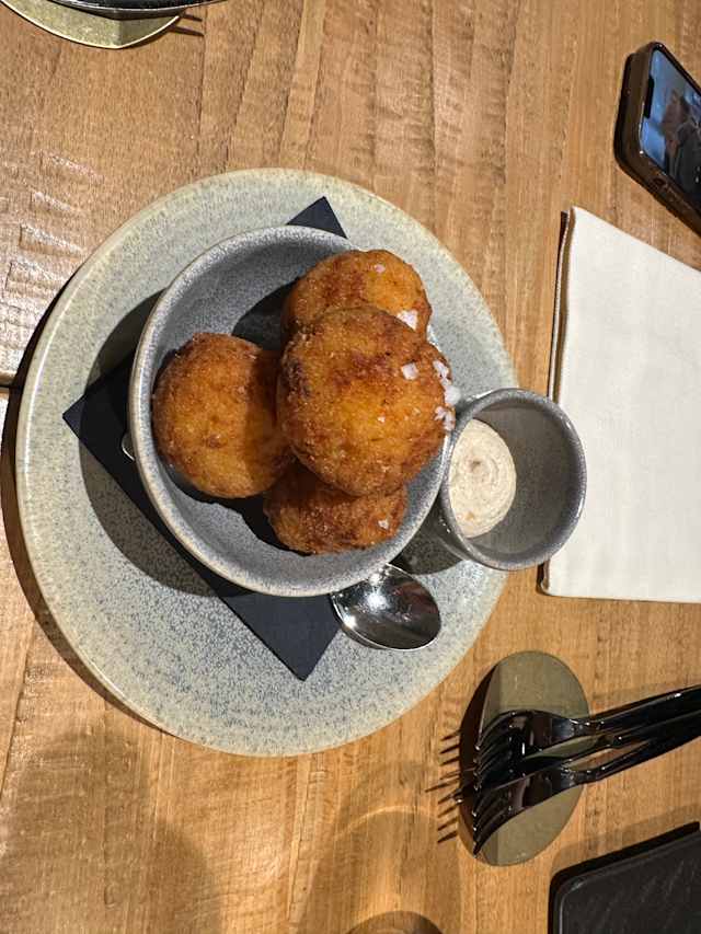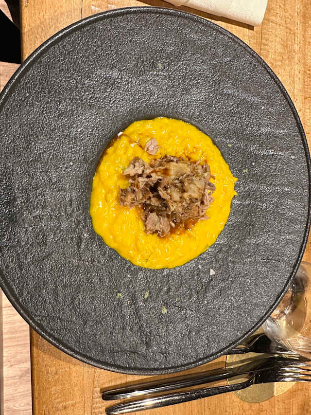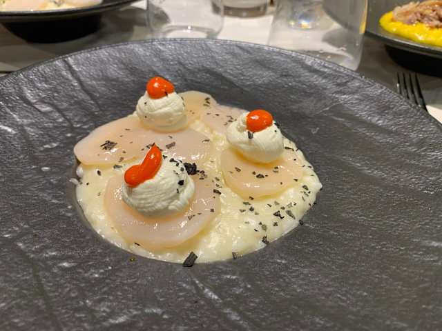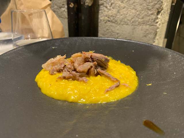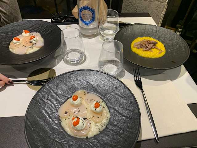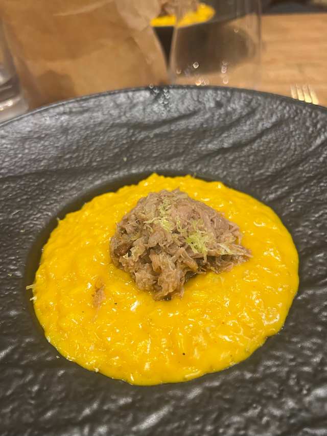 7.5/10This place is a contemporary take on risotto. But do not over order because the rice (riso) can be a bit much. We started with La parmigiana, a classically prepared eggplant dish with no complaints in flavor. We then ordered the “Gunkan Mix”, 8 pairs of unique sushi like rolls, of plain al dente rice in the center wrapped with some type of vegetable or cured meat and then topped with a cheese cream and or vegetable puree like topping. This set of food is too much for two people if you plan on trying their risotto main courses. My wife had the Milanese which was a saffron risotto with shredded ossobuco (beef). While I had the picture worthy scallops which did not suite my palate because of the sweeter undertones. We were not able to finish these two dishes. The texture of the rice in the Gunkan mix was weird for my Asian palate. The Milanese is a safe decision for their menu. If you are a local, this place may be worth it, but travelers should spend time elsewhere.