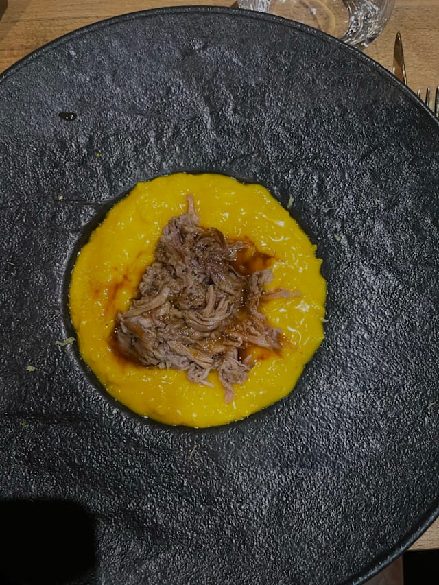 Risotto allo zafferano, ossobuco sfilacciato, limone
