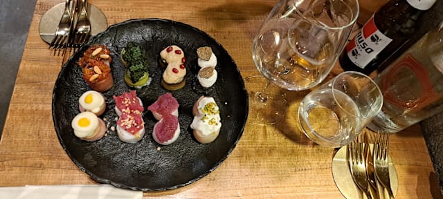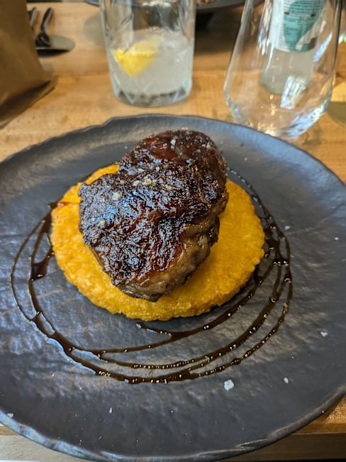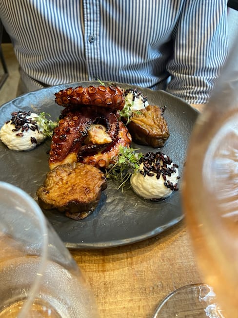9.5/10Excellent fusion food. As well the small Japanese style starters as the octopus as the grilled steak. Very well thought dishes with tasty flavors - bitter, sweet, salty - you should definitely try. Only room for improvement would be that it was not asked how the steak should be cooked. For my wife it was perfectly cooked medium rare but e.g. I could not have eaten as too rare for me. Should change that to avoid misunderstandings but as said for us it was excellent.