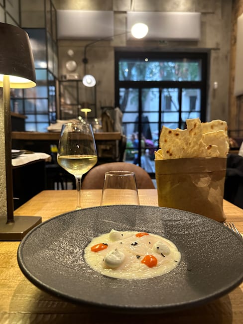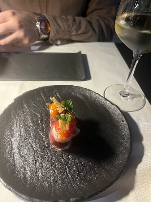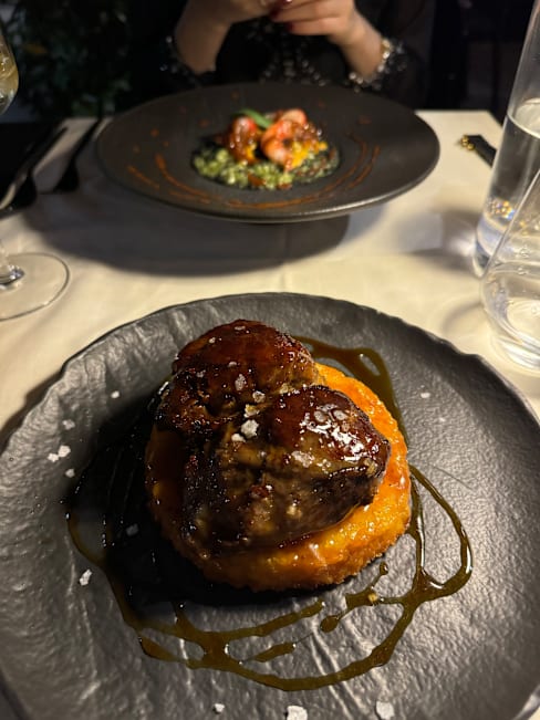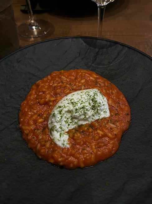 7.5/10This place is a contemporary take on risotto. But do not over order because the rice (riso) can be a bit much. We started with La parmigiana, a classically prepared eggplant dish with no complaints in flavor. We then ordered the “Gunkan Mix”, 8 pairs of unique sushi like rolls, of plain al dente rice in the center wrapped with some type of vegetable or cured meat and then topped with a cheese cream and or vegetable puree like topping. This set of food is too much for two people if you plan on trying their risotto main courses. My wife had the Milanese which was a saffron risotto with shredded ossobuco (beef). While I had the picture worthy scallops which did not suite my palate because of the sweeter undertones. We were not able to finish these two dishes. The texture of the rice in the Gunkan mix was weird for my Asian palate. The Milanese is a safe decision for their menu. If you are a local, this place may be worth it, but travelers should spend time elsewhere.