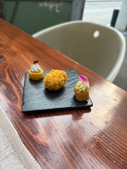 6/10The food was nice but not amazing. It says it's tapas style but the food came out two dishes at a time, one per diner, but we shared. The bao was soggy and the curry oddly came with pastry. The complimentary tasters were the best bit.