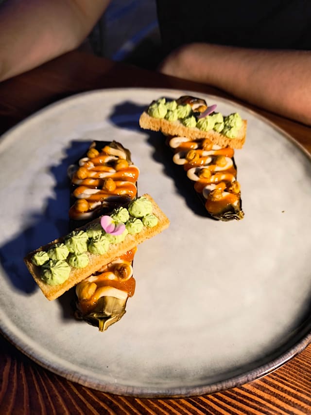 8/10We ordered two different menus, each consisting of three small plates. While the dishes we're tasty individually, we found the elements to be slightly repetitive. Out of the six different dishes, almost all contained mayonnaise and fried elements. We would have loved a bit more variety.