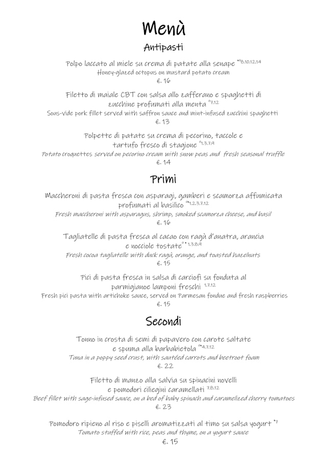 The service is excellent, top notch. The food is amazing, ten out of then too. The only issue we had was the lighting... which is all glarily white and takes away from the warmth one would expect. It is a bit like eating in a factory canteen with the white neon tubes. Other than that, excellent. And thank you for the chance to visit the Bocelli museum upstairs.