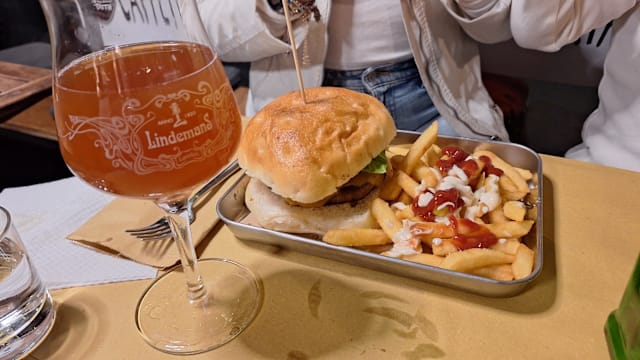 Gentile cliente la sua recensione accurata quanto fantasiosa fatta anche su Google, presenta tante inesattezze.. Non ha saputo riconoscere le patatine sfoglia fatte da noi a mano da quelle in busta ,e questo la dice lunga sulla sua conoscenza gastronomica. La cipolla caramellata (che facciamo noi) non ha salse varie all’interno,come ha potuto notare le salse le portiamo a parte così ognuno può condire i piatti a proprio piacimento.Per i 50 centesimi in più non so cosa rispondere, avete pagato 22,50€ in totale con lo sconto TF per il salmone con patate chips e hamburger con patate fritte 1 litro acqua. In ultimo ha equivocato l’attenzione che abbiamo nell’ osservare i tavoli per offrire un servizio attento a qualcos’altro che solo la sua fervida mente ha partorito. le assicuro, con tutto il rispetto per lei e sua moglie, non c’era niente da osservare. L’usanza ,ormai diffusa, di scrivere su una tastiera anziché chiedere spiegazioni subito fa sì che non potrà mai esserci un confronto equo e veritiero..
