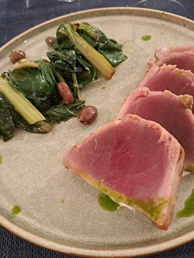 - Spigola, scampi, gamberi e tonno rosso.
