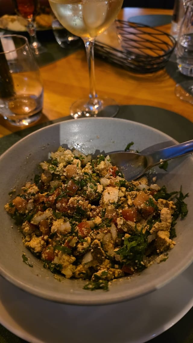 Aubergine grillée, poivrons, oignons, persil, sumac, citron et huile d'olive