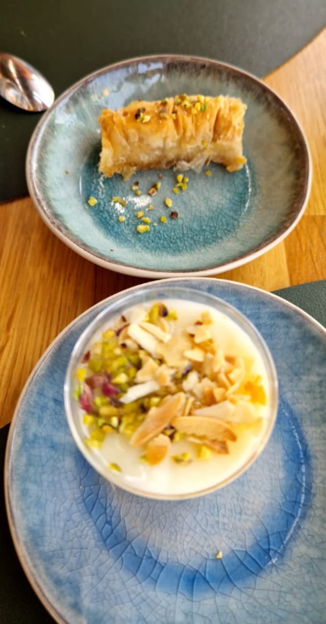 Accompagné d'un trio de desserts libanais