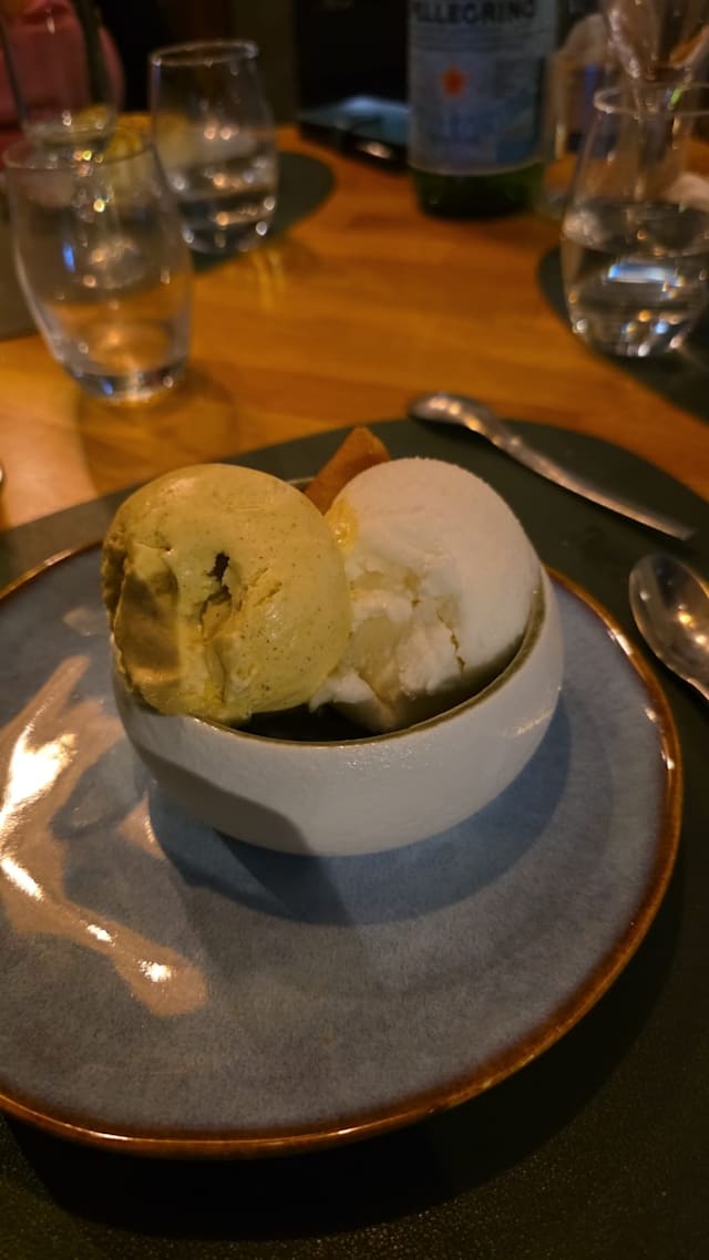 Glace libanaise, une boule à la crème de lait enrobée de pistaches et une boule aux pétales de rose