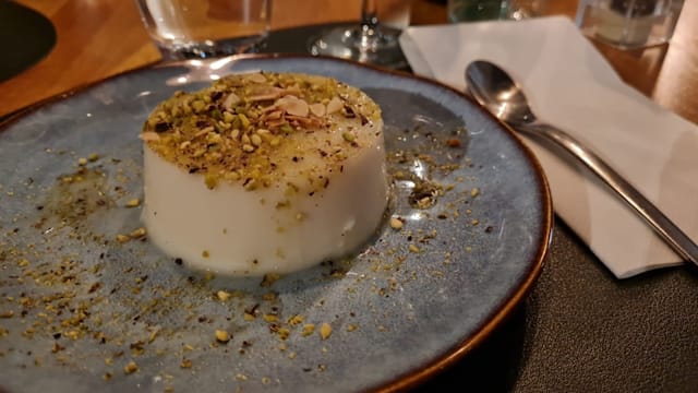 Flan à la fleur d'oranger saupoudré de pistaches et d'amandes effilées