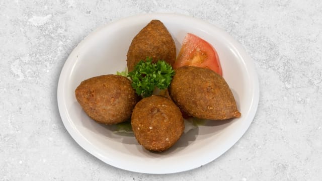 Boulettes de viande hachée et de blé concassé farcies de viande, oignons et amandes
